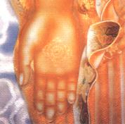 当我们肢体疼痛的时候,假如碰触到硬的东西,更感觉到疼痛无比,而佛经上描述佛陀的手‘平坦、充满、光滑’就像兜罗棉(最柔软的一种棉)。末学常想,这样柔软平坦的手,是来自如何柔软平等的心?这样的手,即使碰触到伤口,伤口也不会疼痛,也能够得到抚慰了。也许同在病苦中的朋友,都会有一种无奈,因为从小无论在家里、在学校,即使读很多书,都没有人教过我们:很痛的时候,不用止痛剂要如何安然度过?咬紧牙根的强忍实在是心上一把刀,末学也一样,曾有人问末学:‘你都不会痛吗?’末学又不是没有神经,岂有不痛之理,只是庆幸有‘佛经’可以胜过‘神经’,深信佛力必能胜过业力!发病后也曾痛到全身僵冷颤抖,穷平生忍力尚不知如何让自己能解脱片刻,末学立志不用止痛剂,而以加大信愿念佛的心波,强过痛觉的神经波。有一天因画佛手在量度经解读到对佛手的描述:‘不露骨节,而柔和如意,屈伸悠然,犹如象鼻之弯转焉’,这句话对末学在痛中念佛有很大的启示,又在无量寿经会集本上发现经中出现了好多次的‘身心柔软’,‘身意柔软’比如:描述阿弥陀佛光时,说到‘其有众生遇斯光者,垢灭善生,身意柔软’;介绍极乐国的菩萨修持时,别说‘调伏诸根,身心柔软’;形容极乐国民饮食受用自然,而食后‘身心柔软,无所味著。’这些经文里让末学反省到一向自己身心太僵硬了,常不自觉地有部分肌肉紧张,不柔软,大家假如回首观察自己在痛苦中的姿势,一定会发现至少有部分身体强硬卷缩或握拳挣扎,即使是口中念佛,心也会偷偷溜去抱住那痛苦的地方,越执著越痛,可是‘身见’没有破除的凡夫实在难以突破此点,末学也是病痛临头才开始练习,似乎太迟,可是佛经威力一定会强过痛神经的嚣张,不信您在痛苦中可以试试,如经言—让手足各关节都保持柔软如象鼻之弯转,在身心柔软中清楚念佛,就犹如浮在水上,飘浮划水前进,水有浮力,相信浮力,放松了就能上浮,就能游泳;假如害怕挣扎,信不过浮力,那么同是这个体重,也会下沉;念佛人体验佛力,就如游泳者体验水的浮力一样。末学承受大众深思,实在没有什么可以呈奉供养,只有说说自己病中屡屡失败的一些经验,也许有人在漫漫长夜独自流泪时会用得到吧?初病倒时,因为觉得不大声念佛实在心里听不明白,体力越差注意力越难集中,站著摇摇幌幌,走路跌跌撞撞,躺著昏昏沉沈,只有打坐比较可以支持,因为对末学病况而言,比起拜佛或走动,打坐还算是较容易的姿势,最初也只好流泪忍过腿骨的疼痛,猛力一直出声,念到嘴唇都肿起来再念到肿消下去,开始一小时顶多能念六千声佛号,每天尽量打坐十小时,持念六万声佛号,也难以做到雪公老师所教的‘百八心不乱’,说实在病痛里念佛的心情,都太急迫,静夜里听自己白天念佛的录音带,发现是一种身心逼迫的气氛,不能做到‘南无’。亦即‘皈命,把命交出去’的轻松自在,能皈命一分方能感到一分佛力,能全然皈命才能体会十分佛力,我们的‘交出去’好像都会在不自觉中又偷偷要回来,‘南无’虽然好唱,但是不易真正实行。有一天末学凝望佛颜念佛,突然感受到一启示,也忽然发现含藏在名号中的慈悲—无论是那一国人痛苦时几乎部喊出‘阿’的声音,佛的悲悯让我们在称名时就尽情畅吐痛苦烦恼积郁,假如能柔软松开口腔,尽心舒畅念‘阿’,痛苦就随音声倾泄化空了。其实阿弥陀三个字各别都有无尽的奥义,梵语‘阿’字,翻译成‘无’,含‘本不生’的意义,故是空谛,阿字观说:‘自阿字出一切陀罗尼,自一切陀罗尼生一切佛’,一个阿字功德便巍巍如是,喜欢研究的学长也可以去读经逐字探讨。但真正念时,是不思议的,只须清畅地一个字一个字念清楚,除了当前这一个字,什么都是多余的!身心苦恼都在‘阿’字里解放吐空,病中念久真的不禁会感谢佛名大恩!量度经解描述‘佛口’说:‘口之两角,竟半麦之分,其梢向上翘起,如花瓣之尖,美妙含笑之容。’由佛的微笑中,发现佛名号里的‘弥’字,轻轻全抿双唇念出,就似绽放安详微笑之容。正如慈悲之意是拔苦予乐,称念佛名‘阿弥’二字就足有拔苦又予乐之功,真是不可思议的‘解脱光’!念一声就和佛会心一笑,常念就常和佛会心微笑,真是念越多越欢喜,真是不可思议的‘欢喜光’!难怪古德说念佛之乐唯念佛人可知。放松身心、放松舌头轻念‘陀’,不管是梵音,国、台语,舌轻触上颚,清晰念听,就鼓舞阵阵精进向上的气机,有如自家充电一般。佛是圆满的觉悟者,一念到佛,也让我们转面向光明,同照本有的佛性,末学是念佛幼稚班说不出弘深的道理,只是想到许多辗转病榻众苦逼迫的同伴,不由得忘记自己的浅陋,唠叨说一些垂手可得的念佛之乐,阿弥陀佛有愿,在其名号中‘为众开法藏,广施功德宝’,所以信佛慈的人只要老实念,念念都能得到功德宝!真的末学至今尚不曾靠用止痛剂,都是靠放松身心令柔软,凝视佛像或闭目忆佛慈颜,感恩地恭念万德洪名,尽心念到最清畅,您能发多清晰的音就尽十分力发到多清晰,同时回收‘音光’,逐字听明;即使不出声,也要聆听静默里清畅开怀的佛声,犹如经中所言:‘畅发和雅音,歌叹最胜尊’。我们虽然不能共聚念佛,但可以一起乘著佛声的翅膀,飞越过十万亿烦恼痛苦,到极乐世界的琉璃枝梢,与那迦陵频伽合唱一曲南无阿弥陀佛,共享无量光寿的甘美和开阔庄严!经上描述极乐国的乐