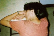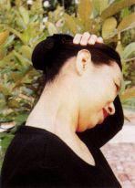■若拜佛俯首时,下巴不能贴胸者,(多因长期仰头,肌肉,韧带缺乏弹性、缩短)有空暇时,宜常以手辅助调整。(如开车塞车时,正好做此调整)—