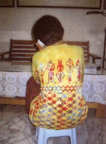 (1)只要一天做持续‘不收下巴’的工作(如开车、打电脑)之后,拿一汤匙,在颈后,及肩上皮肤轻刮(擦些油)就会出现很多‘痧点’,(红色如小沙粒之点)(见下图(1)),这并非刮伤出血,而是沉积在细胞间之淤滞‘垃圾’,因阻力太大使淋巴、血管不能完全畅通(犹如塞车),致使垃圾送不走,郁积于局部。颜色深红,甚至发紫的(变黑的)更是缺氧严重,可说是‘陈年老废物’,若不清除,必然积久成疾。(业障,包括此种身业之障)拜佛是最好的消除法(消业障),使‘交通顺畅’,垃圾能处理运送。而最好是平日,注意行住坐卧威仪,‘正而松’使不产生疲劳及废物沉积,方是根本之策。