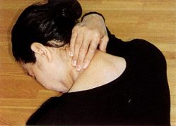 *若下巴不能贴胸者,只要反覆如瞌睡之自然松垂,或加以后颈热敷,即可做到。