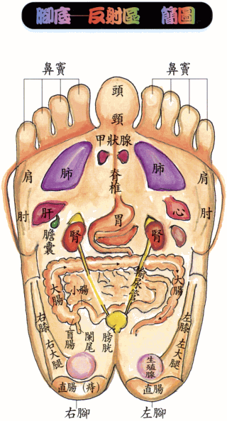一般人,这末端的关节很少活动,且长年绑在鞋中,甚至连走路时,都很少灵活地舒活脚底筋脉,而多采用‘足趾、足踝都很僵硬’的走路方式,进而影响相关的内脏。(内脏在足底有‘反射区’)。