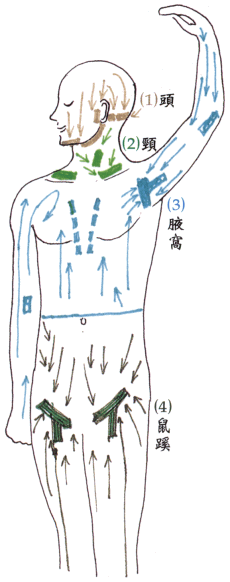 (4)下半身 ┘ ──→集向‘鼠蹊部’。
